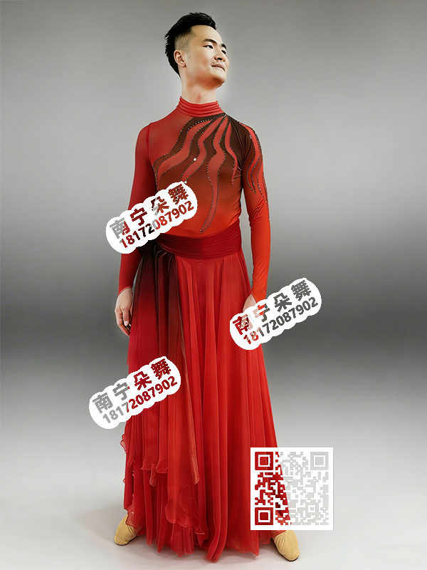 简单描述: 大红渐变黑现代舞大摆裙裤男装