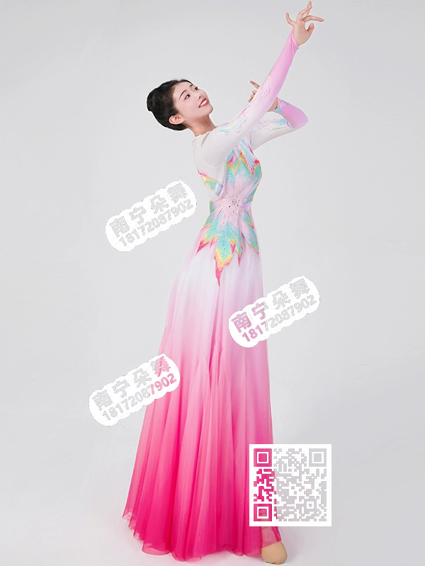 橙红渐变绿橙绿流光开场舞女大摆裙