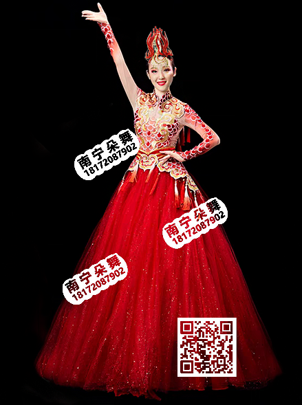 橙红渐变绿橙绿流光开场舞女大摆裙