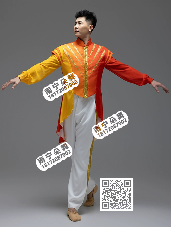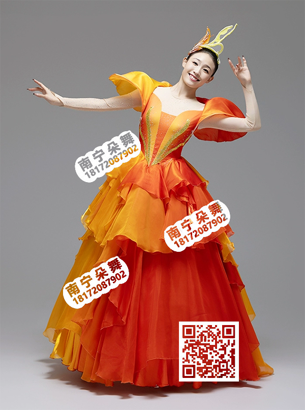 橙红渐变绿橙绿流光开场舞女大摆裙