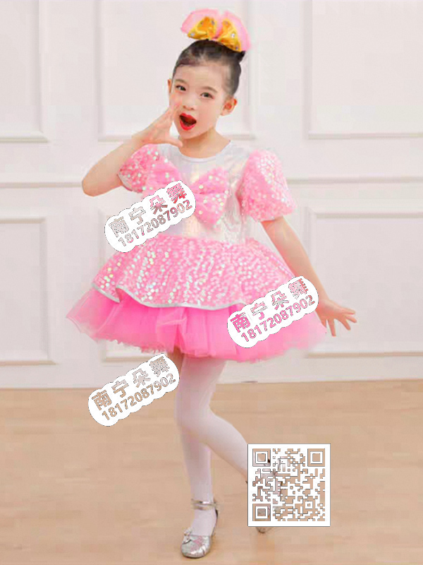 简单描述: 粉色间白亮片蝴蝶结纱裙女童