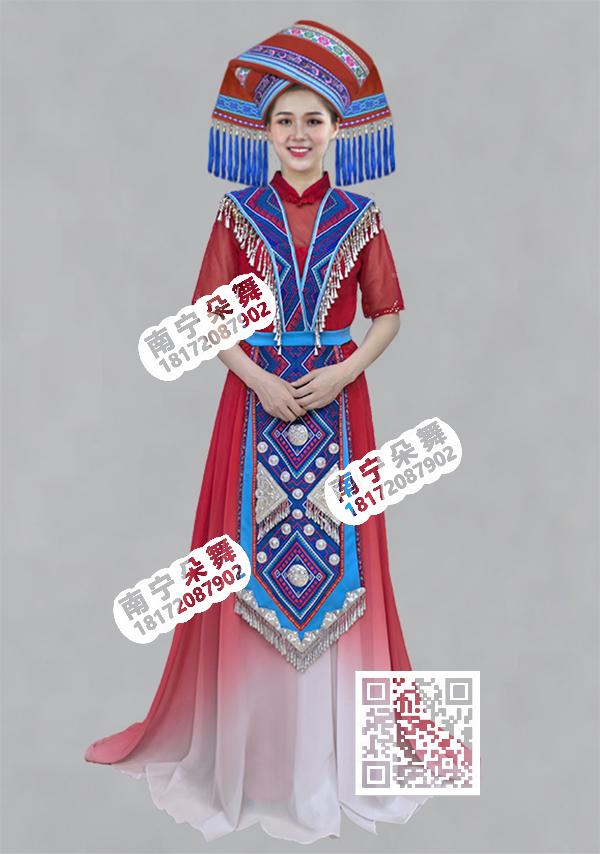 简单描述: 红白渐变蓝肩腰中袖壮族长裙.png