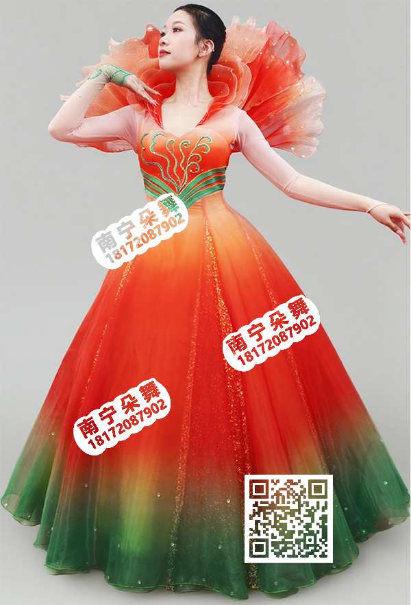橙红渐变绿橙绿流光开场舞女大摆裙