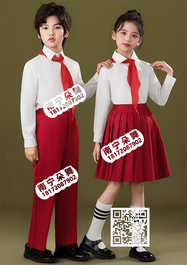 白衬衫红百褶裙红裤男女童装