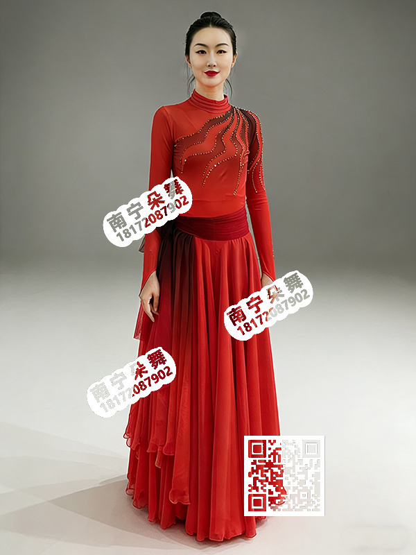 简单描述: 大红渐变黑现代舞大摆裙裤女装