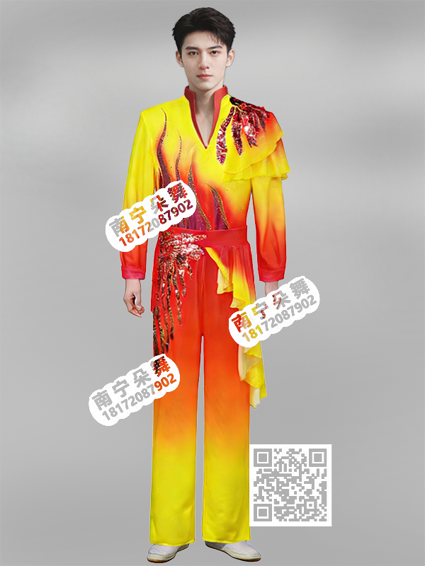 红黄渐变单边荷叶边亮片男装