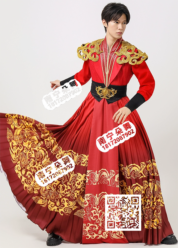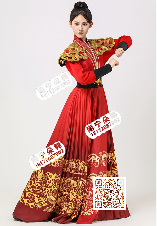 简单描述: 大红金边黑腰马面裙黄鹤楼女开场舞套装