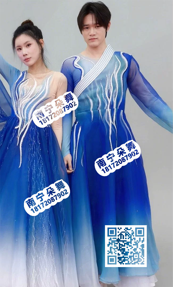 简单描述: 蓝白渐变蓝焰流纱大摆裙