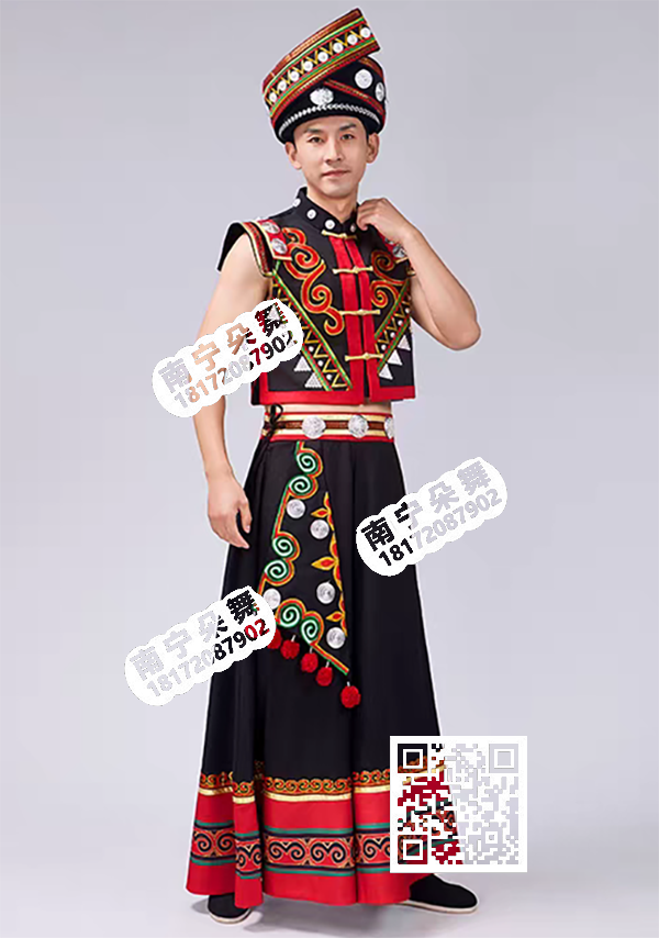 红黑方肩长裙彝族男服